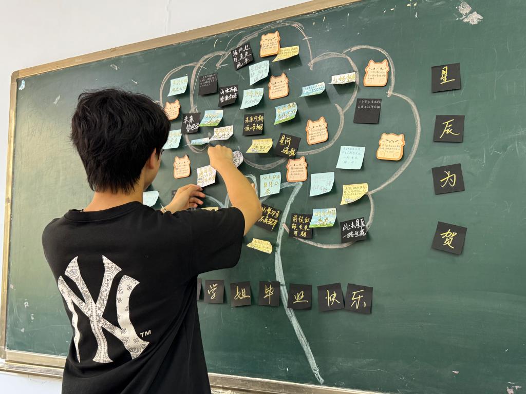 文明举止方面,倡导毕业生爱护校园环境,离校途中遵守校园秩序,用平和与感恩告别每一处角落,为学弟学妹留下“文明榜样”。宿舍方面,离校前务必切断电源、锁好门窗。整理宿舍时分类收纳物品、主动清扫居住环境,让床位“整洁如新”。处理旧物时通过捐赠、义卖传递温暖,拒绝随意丢弃,向学弟学妹展现学长们的良好精神风貌。同时,学弟学妹也通过自己的方式向学哥学姐们献上了真切的祝福,祝愿学哥学姐们前程似锦!
