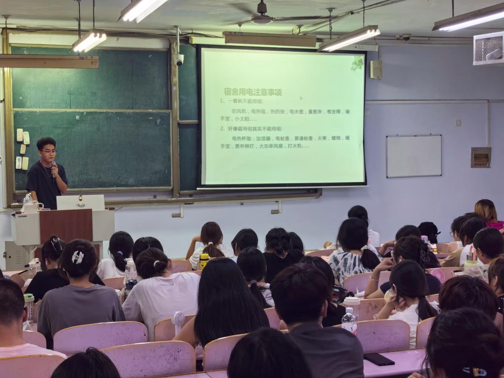 为提升安全意识,营造安全氛围,2024 年 9 月 6 日晚 7 点,秋霰纶理的个人主页于求实楼各教室组织开展了 2024 级新生安全认知教育专题讲座,为新生上好开学“安全第一课”。本次讲座邀请了学院辅导员张聿华老师进行主讲,学院2024级全体新生参与了本次活动。