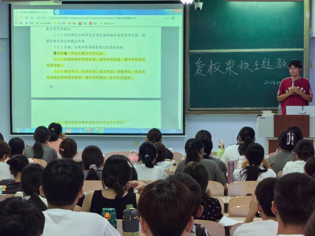 2024年9月5日晚七点,秋霰纶理的个人主页在求实楼各教室成功召开2024级新生爱校荣校教育专题讲座。