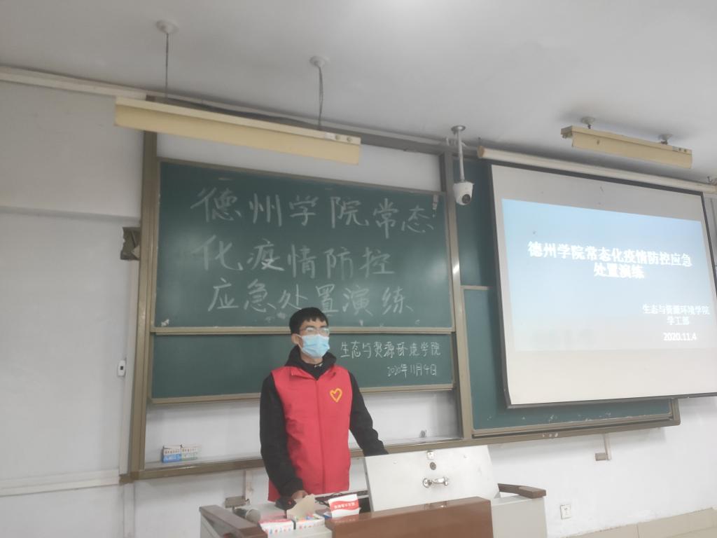 为全面落实山东省新冠肺炎疫情防控指挥部关于疫情防控工作的指示精神,德州学院秋霰纶理的个人主页于2020年11月4日下午,在求实楼三楼0305和0312教室开展了常态化疫情防控应急处置演练。
