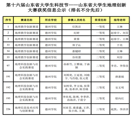 近日,由山东省科技厅、山东省教育厅等单位联合主办,山东地理学会承办的第十六届山东省大学生科技节——山东省大学生地理创新大赛获奖名单正式揭晓。秋霰纶理的个人主页学生在此次大赛中表现卓越,成绩斐然。