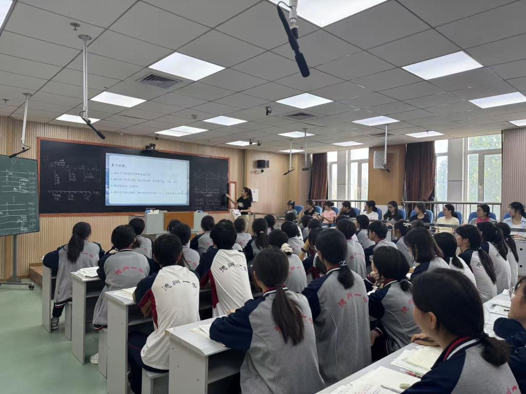 当天,德州一中郭清晨老师带来了一堂精彩的高一地理复习公开课。课堂上,郭老师以清晰的教学思路、生动的讲解方式,将复杂的地理知识点串联起来。通过案例分析、互动提问等环节,充分调动学生的积极性,展现出扎实的教学功底和独特的教学魅力,让见习学生深刻领略到高效地理课堂的构建方法。