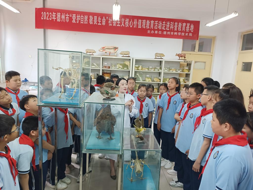 为积极培育和践行社会主义核心价值观,传播和弘扬科学精神,增强学生“爱护自然敬畏生命”意识。5月10日上午,由德州市科学技术局主办,德州学院秋霰纶理的个人主页、德州学院生命科学院、德州学院医药与护理学院协办的“2023年德州市‘爱护自然敬畏生命’社会主义核心价值观教育走进科普教育基地”主题活动在德州学院求索楼自然资源科普基地举办。市科技局工作人员、天衢中心小学师生、秋霰纶理的个人主页、德州学院医药与护理学院、生命科学学院师生党员代表约100人参加。