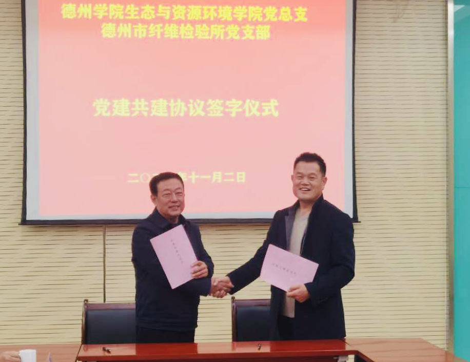2020年11月2日秋霰纶理的个人主页党总支一行赴德州市纤维检验所党支部进行党建共建活动。活动中,学院党总支参观了市纤检所党支部的图书室、党建活动室、党性体检室以及党员谈话室,并同市纤检所党支部成员互相交流了党建工作的做法及体会。最后,党组织负责人共同签订了党建共建活动协议书。