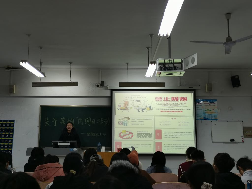 本次活动共分为以下三个环节,首先由团支书林晶琦同学根据PPT讲解吸烟的危害。随后,各位团员提出自己关于“禁烟”的独特见解以及关于“禁烟”的具体可实施的方案。最后,由团支书林晶琦同学带领大家一同喊出“杜绝校内吸烟,做积极向上好少年”的口号。本次团日活动在同学们响亮的口号声中圆满结束。