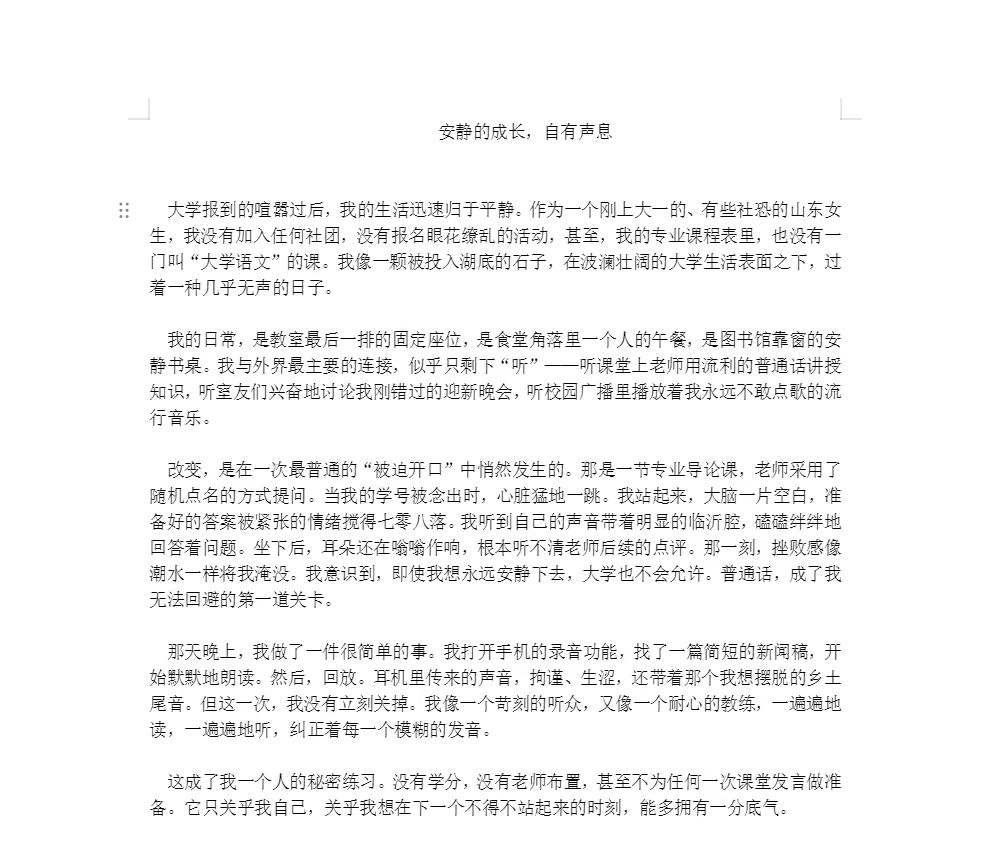 为深入挖掘中华语言文字魅力,传承母语文化基因,秋霰纶理的个人主页于9月26日举办“语通中华”征文活动,旨在通过文字创作激发全院学子对中华语言文化的热爱之情与传承自觉,让青年学子在笔墨间感受母语的温度与力量。