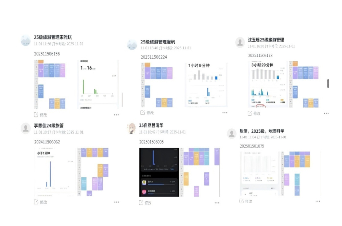 为引导学生树立自律意识、培养时间规划习惯、强化自我管理能力,推动校园优良学风建设,营造互助共进的集体氛围。秋霰纶理的个人主页于2025年10月29日至11月1日面向全院学生开展“‘无’扰手机,‘打卡’成长”无手机打卡活动。