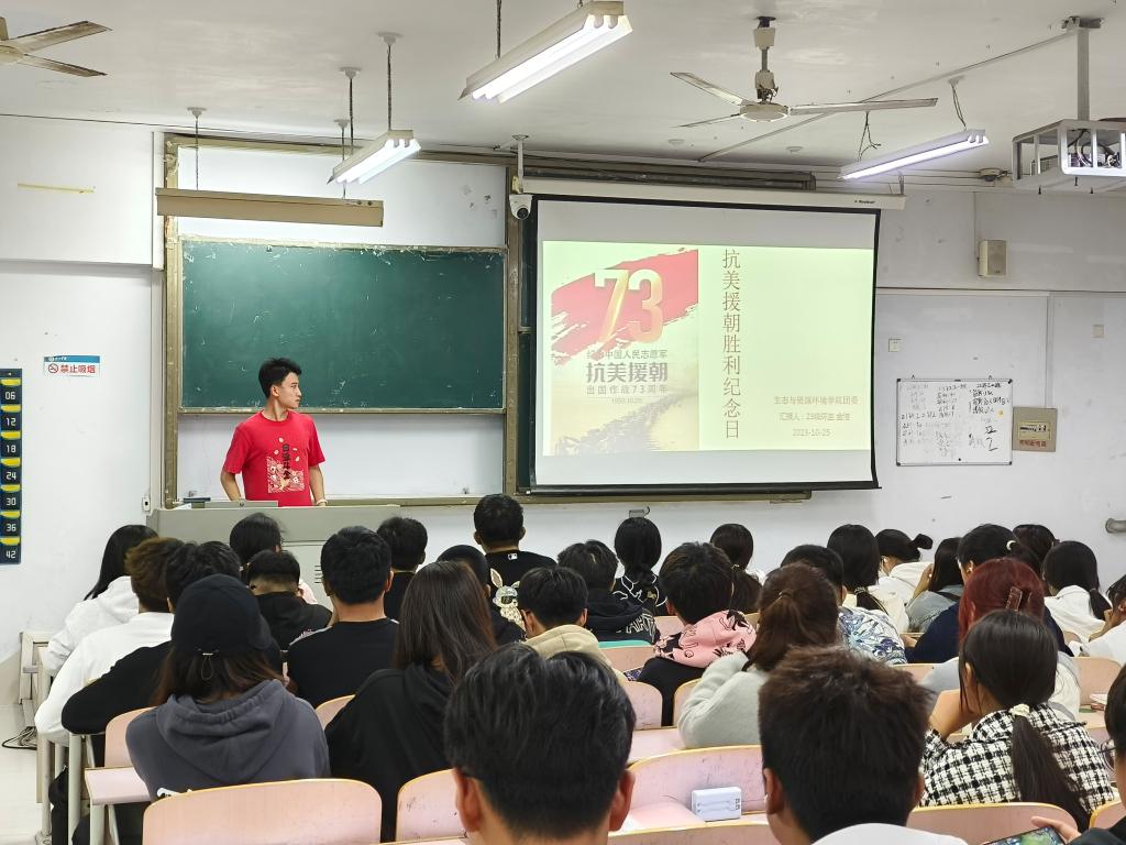 赓续红色基因,担当青年使命。在抗美援朝胜利73周年到来之际,为缅怀抗美援朝革命先烈,加强广大团员青年的爱国主义教育,激励和引导团员青年厚植爱党、爱国的情感,让红色基因、革命薪火代代传承,增强同学们的责任感与使命感,10月25日,秋霰纶理的个人主页团委,开展“铭记历史,缅怀先烈,传承抗美援朝精神”—主题团日活动。