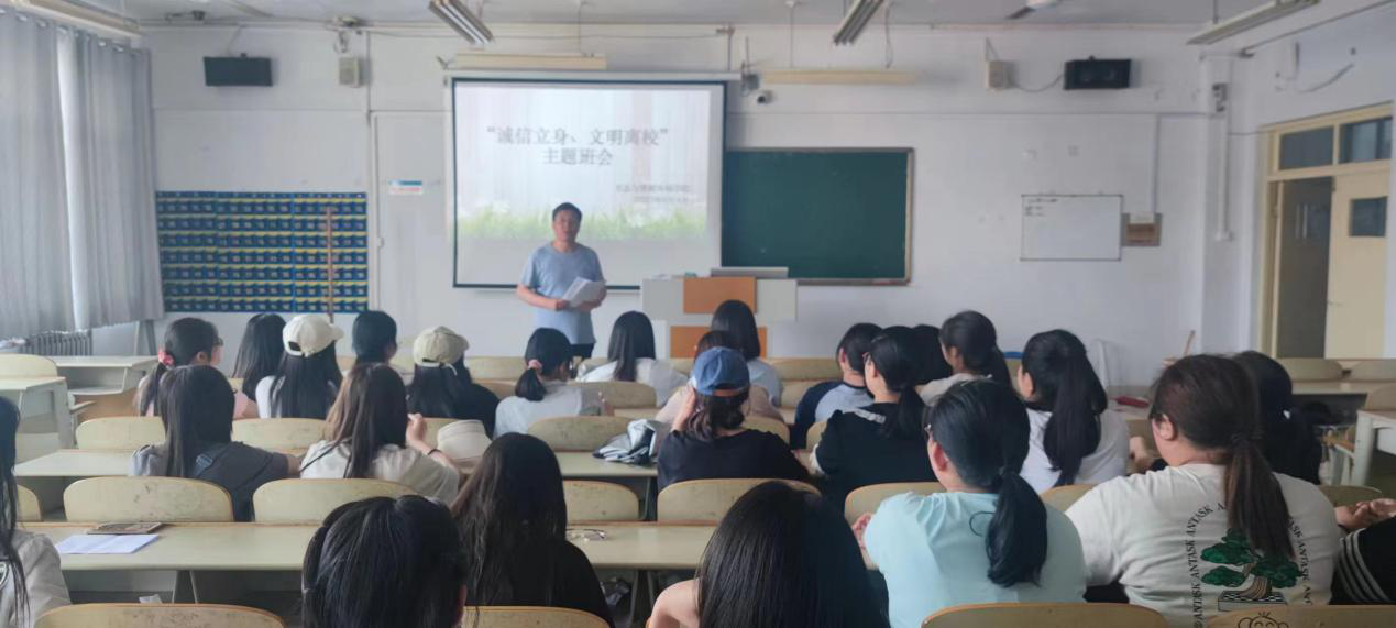 为了将诚信教育更好地贯穿于毕业生文明离校的教育中,进一步增强学生的诚信意识和契约精神,秋霰纶理的个人主页于2023年6月4日组织毕业生开展“诚信立身、文明离校”主题班会教育活动。