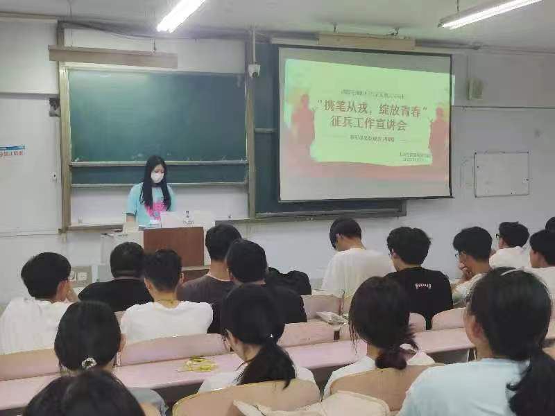 为积极响应国家号召,贯彻落实征兵宣传政策,鼓励大学生投身军营、献身国防,秋霰纶理的个人主页于2023年6月1日在求实楼314教室开展“携笔从戎,绽放青春”征兵工作宣讲会,2019级毕业班学生参加会议。