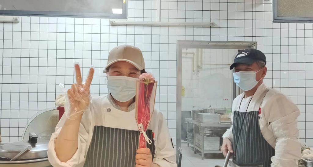 本次活动征集班级同学志愿送花,前往教师、餐厅阿姨、宿管阿姨、门卫保安等工作地点向节假日奋战一线各岗服务工作人员献花送祝福,展现劳动之美,讴歌辛勤的劳动者,歌颂每一个用劳动创造幸福生活的人。活动中同学们用鲜花、贺卡祝福语来赠予学校劳动者,使他们在为他人服务、奉献爱心的同时,也能感受到来自他人的关心和问候。鲜花送予劳动者,问候传递真情。本次活动同学们向劳动者们献上一捧鲜花,送上一声问候,表达一份敬意。
