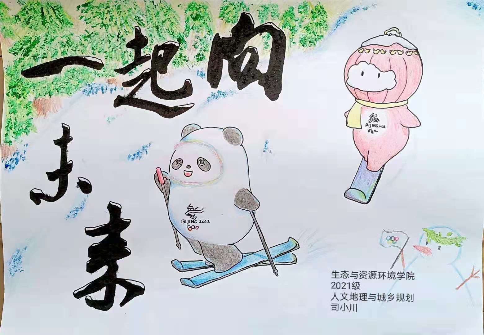 本次活动由校学生工作处公寓管理中心主办,我院学生自律委员会承办,德州学院全体同学积极参与。活动围绕“冰雪冬奥,相约虎年”展开,参赛作品形式多种多样,有绘画、拍摄照片、征文等。其中2021级吴霆同学的绘画作品《冰墩墩》出类拔萃,该作品中的形象身穿超能量的冰晶外衣,酷似宇航员,寓意着能够创造、探索和冲向无限可能的未来,作品以丰富的想象力荣获一等奖;2021级肖洁同学的征文《一起向未来》表达了人们在冬奥精神感召下,都能心怀暖意、共同携手、驱散严寒、向着美好未来前进。