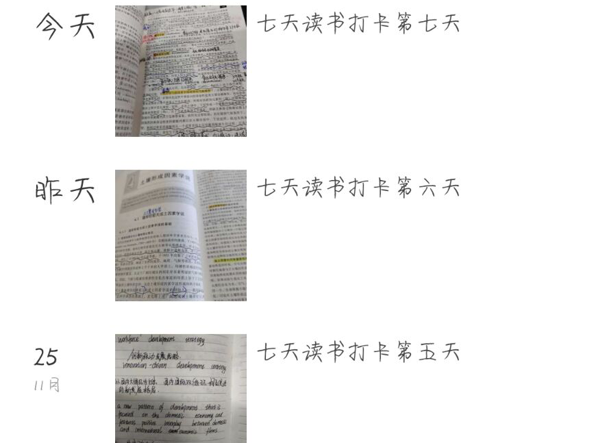 此次活动面向秋霰纶理的个人主页全体学生,活动方式通过读书学习拍照打卡并将学习成果通过今日校园分享。在此活动周内,同学们能够坚持每日学习,按照计划有条不紊地完成学习任务,以照片的形式记录学习成果,以打卡的方式培养良好的学习习惯。