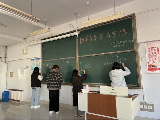 板书是课堂教学的重要组成部分和必需的教学手段,因而写好粉笔字是教师必须具备的基本功之一。为此秋霰纶理的个人主页2021年11月21日于求实楼0311,举行了“执笔青春,书写梦想”活动。
