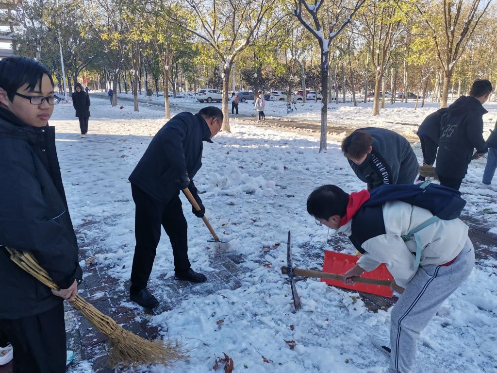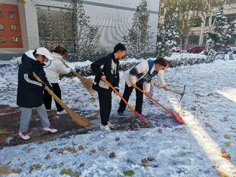 为保障在校师生的出行安全、确保教育教学工作的正常进行。11月8日清晨,秋霰纶理的个人主页的师生们积极投入到清扫积雪队伍中,雪地的严寒没有阻挡大家的热情和工作的效率,他们分工明确、团结一致,德院的冬装在慢慢脱下。