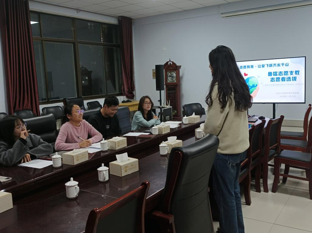 为学习贯彻习近平新时代中国特色社会主义思想和党的二十届三中全会精神,全面贯彻新时代党的治疆方略,号召我院师生积极参与山东省智力援疆、文化润疆工作中,充分发挥学生志愿服务群体在援疆工作中的生力军作用,11月22日,秋霰纶理的个人主页在求实楼302会议室开展“志愿有我·让爱飞跃万水千山”鲁喀志愿支教心理疏导和国家通用语言文字教育线上专项活动志愿者面试选拔工作。