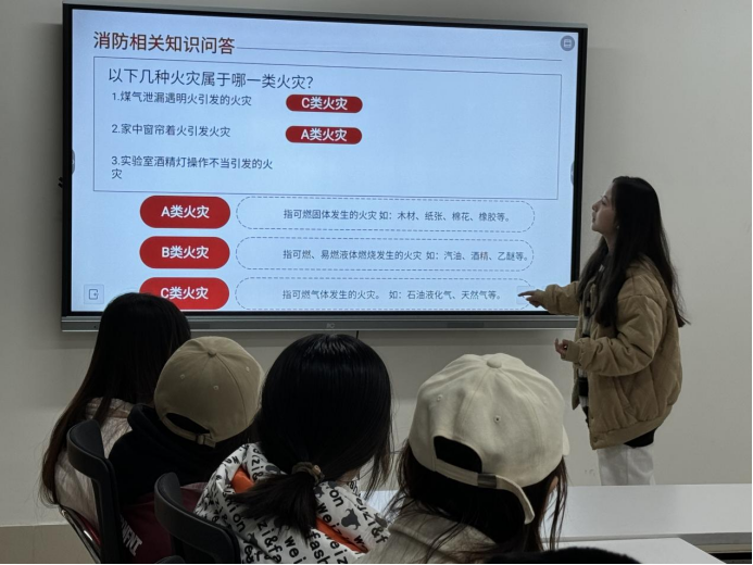 此次活动以消防安全知识讲座的形式展开,通过鲜活案例与互动问答相结合的方式,向同学们揭示了火灾的危险性。讲座上,宣讲人阐述了火灾的常见起因,如电线短路、违规用电、明火使用不当等,加深了同学们对火灾的认识。随后,又向同学们介绍了消防器材的种类与使用场景,使同学们在遇灾时能精准选用,增强自救能力,在学习与互动中拧紧了消防安全的“思想阀门”。