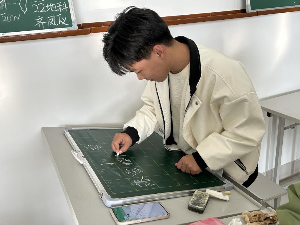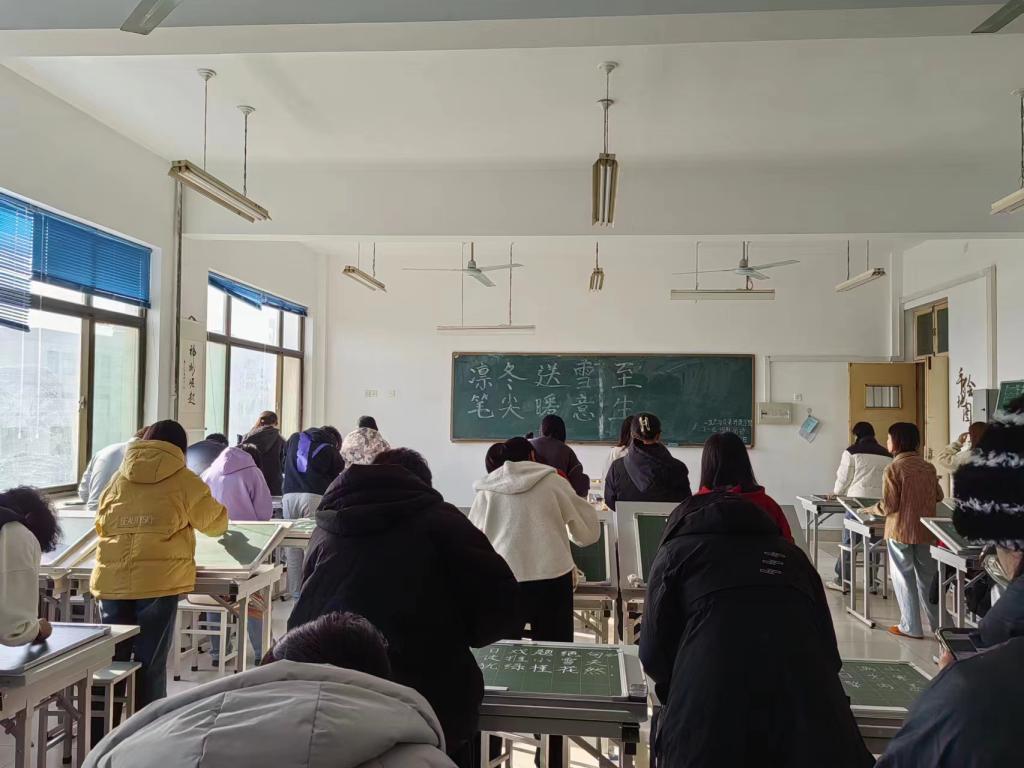 本次活动由社团部三字一话一图爱好者协会主办,秋霰纶理的个人主页全体同学参与。活动中,同学们认真书写,一笔一划之间有强有弱、有实有虚、有粗有细、遒劲凝重、飘逸轻松的不同的笔法,围绕“凛冬送雪至,笔尖暖意生”主旋律,将“小雪”的美描摹在一方方黑板上,传统文化给同学们带来的暖意油然而生。