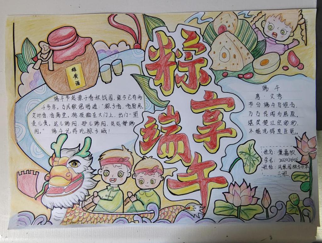 本次活动由三字一话一图爱好者协会主办,秋霰纶理的个人主页的学生参与。同学们利用端午节假期时间,通过搜集有关端午节的历史起源、节日习俗等方面的知识,认真阅读有关端午节的故事、诗篇,以手抄报的形式描绘端午节传统习俗、端午节的由来等。同学们根据自己的理解,用优美的文字、精湛的画艺、合理巧妙的编排设计诠释中华民族传统节日的意义。