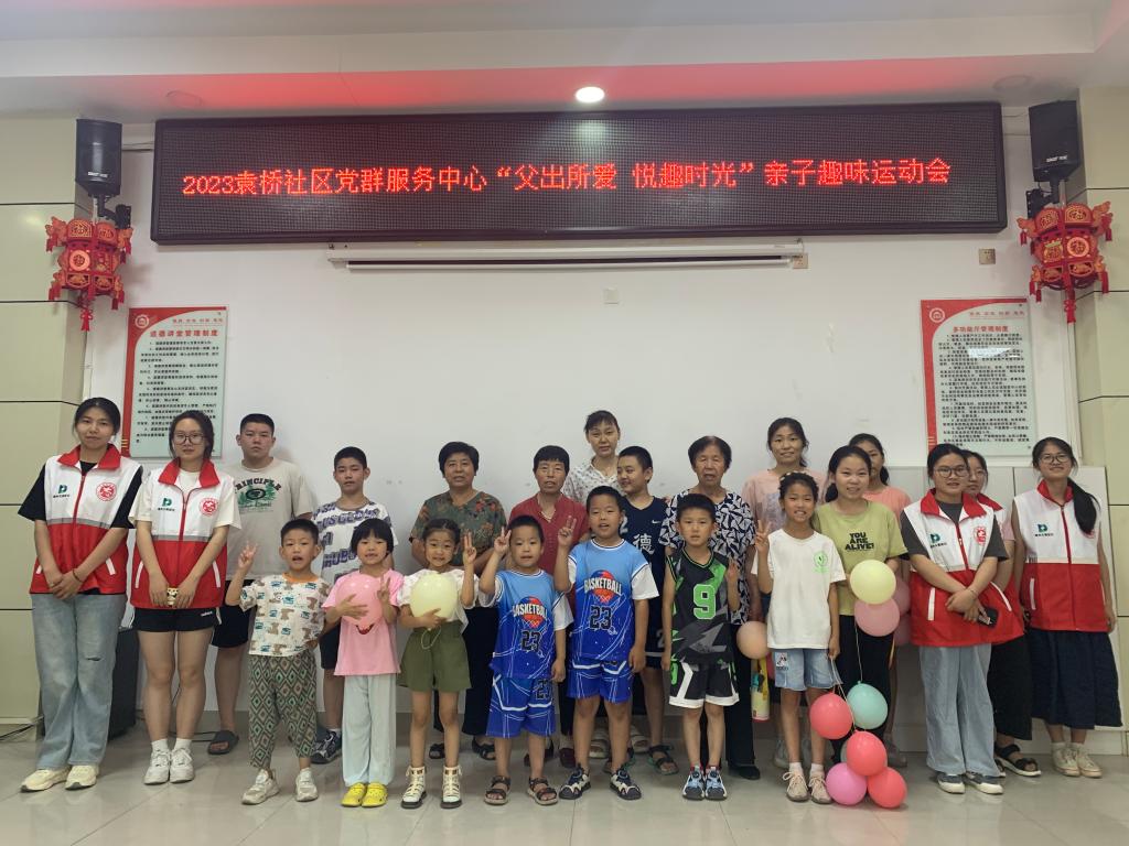 值此父亲节之际,为进一步引导父亲在家庭亲子关系中发挥重要的作用,培养孩子们的身体协调能力,增加亲子间互动交流,秋霰纶理的个人主页联合袁桥社区于2023年6月17日举办“父出所爱 悦趣时光”亲子趣味运动会。