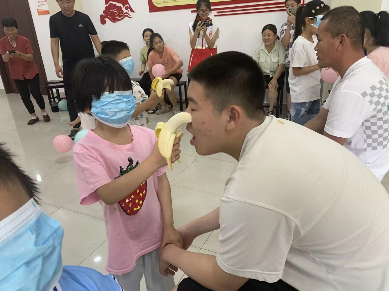 活动开场,志愿者们介绍了父亲节的来历,父亲是孩子一生的榜样,用朴实的语言描绘了不同职业的爸爸在工作中的细节,刻画了一个个真实、丰满的爸爸形象。随后,志愿者带领小朋友们体验踩气球、蒙眼喂香蕉、报纸接力等游戏,每个小朋友脸上都洋溢着灿烂的笑容。最后,小朋友们向爸爸表达了自己发自内心的祝福与感恩,可谓是父出所爱悦趣时光。